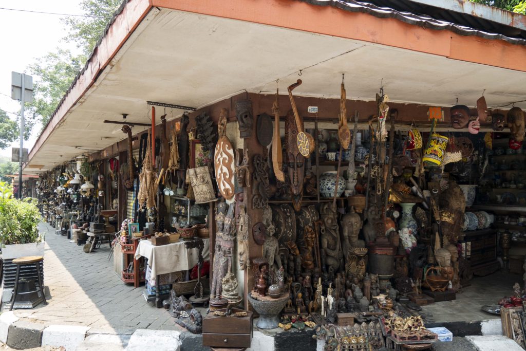 さて、そのスラバヤ通りは、外国の観光客にも人気の骨董品屋さんがたくさん並ぶアンティーク・マーケットとなっています。通りは一方通行となっていて、わずか数百メートルの通りに骨董品屋さんが所狭しとずらりと立ち並んでいます。ジャカルタご滞在中に骨董品市場のあるスラバヤ通りに足を運んでみられませんか?