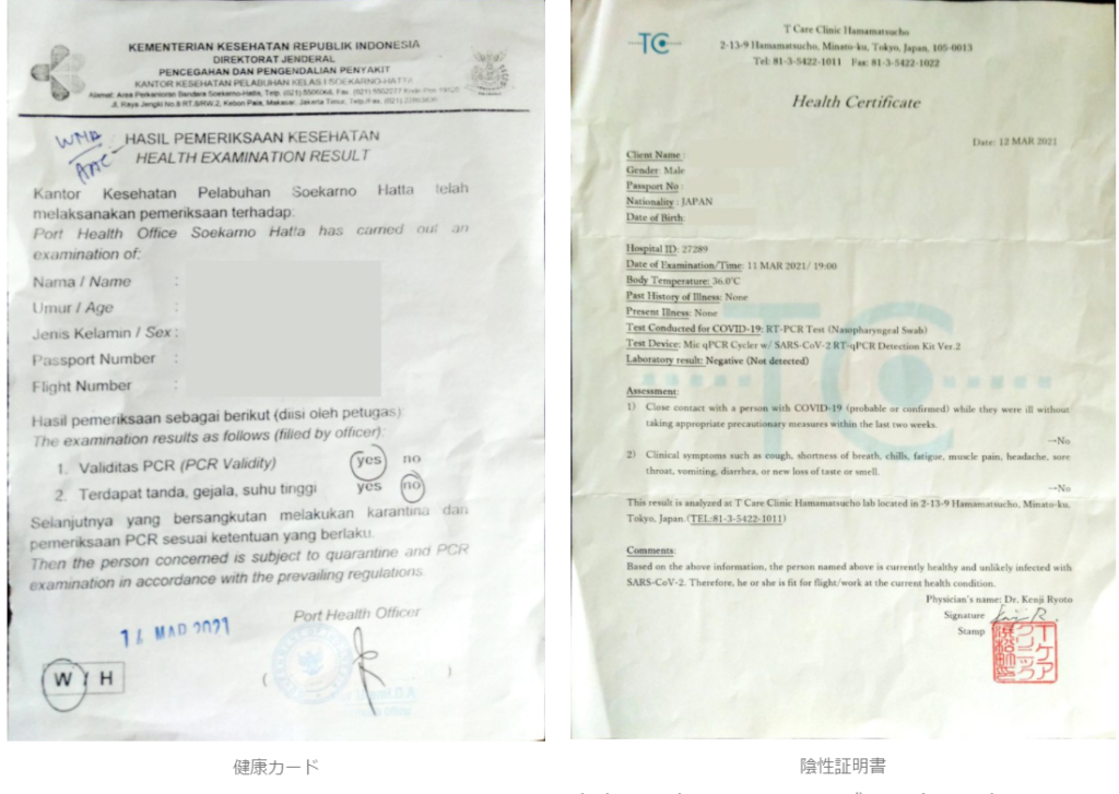 ※日本で取得したコロナの陰性証明書は回収されることはありません。